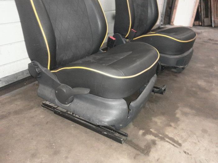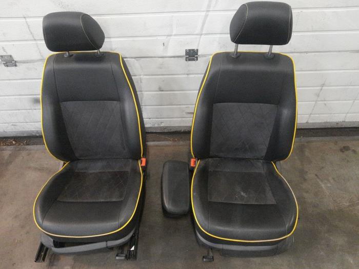2x stoel+ 2x frame 2x mat en armleuning uitv half leder gele rand .