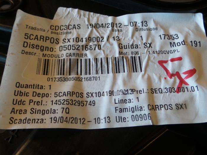 | Wagennummer | V107 | Bouwjaar | 2013 | Motortype | Benzine | Cilinderinhoud | 1400 | Tellerstand | 48880 | Motorcode | 940A2000 | Kleppen | 16 | Vermogen | 125 | Versnellingsbak | 6 Bak | Versnellingsbakcode | C635 | Aandrijving | Voorwiel | Airco | Ja(leeg) | Deuren | 4Dr | Uitvoering | Hatchback | Kleur voertuig | Unikleur, Zwart | Laknummer voertuig | 601 | ABS | Ja | Wielbouten | 5 | Chassisnummer | ZAR940000******** |
